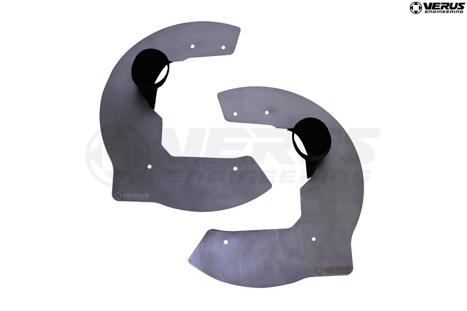The Verus Engineering Brake Cooling Kit is configured in an OEM style format, with emphasis on the shortest route possible. Using an OEM inlet, carbon fender transition duct, and a well-formed duct on the backing plate, this kit directs airflow into the center of the rotor. The inlet of the kit is a beautiful carbon duct that features a constant cross-sectional area that promotes and improves flow through the brake cooling kit. The kit comes with everything necessary for an install, including pre-cut hose.