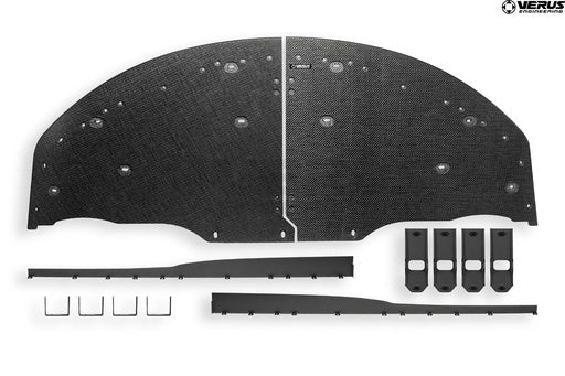 The splitter is produced from a carbon polyweave, which is the same material used in high forms of Motorsports. The material is not brittle, so no more issues with cracking like carbon fiber and ABS. It will not grab and bend under the car like aluminum units either. The material is also lightweight and stiff; which makes it a great splitter material.